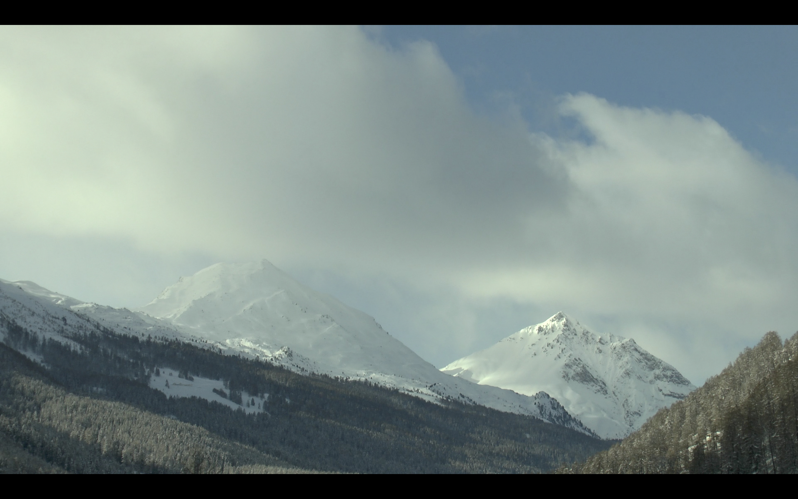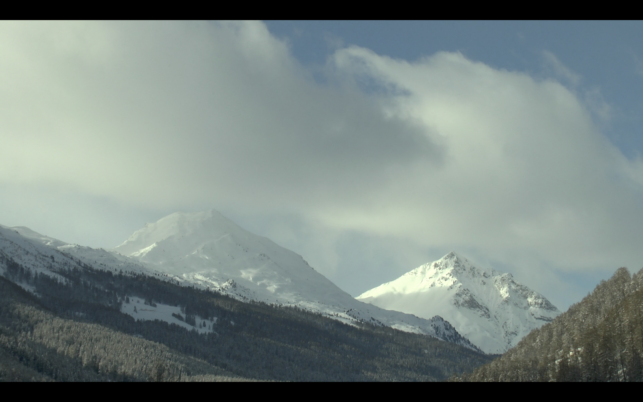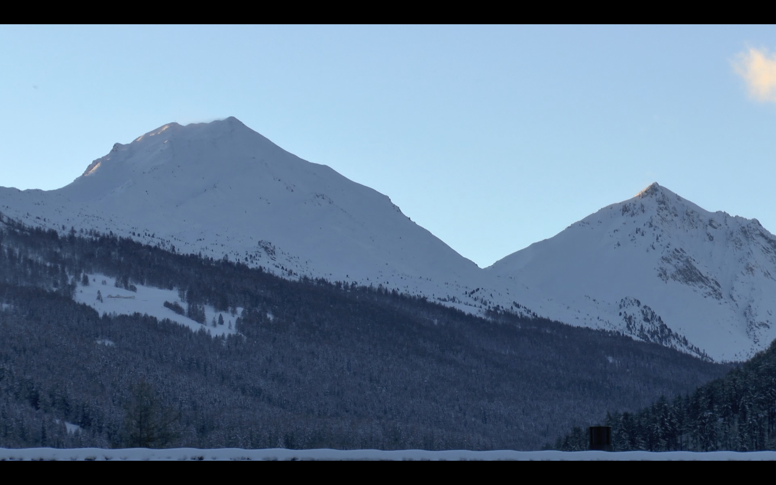 Nullzeit, Ausschnitte aus den Videos Piz Daint-Piz Dora 2, 30 Min., Piz Daint-Piz Dora 1, 10 Min., Platatschas, 5 Min.. Gastatelier da giast, Val Müstair, Dezember 2018